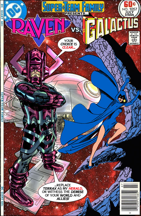 Continued from yesterday's cover, we finally see which Titan Galactus has had his eye on since way back in STF #241 from November 2012. This was a story thread that I left dangling and always wanted to return to. With Raven's abilities to sense the emotions from others, she could become the type of herald that would be able to lead the World Devourer to planets with non-sentient life. Trigon, however, might have something to say about his daughter's new position!